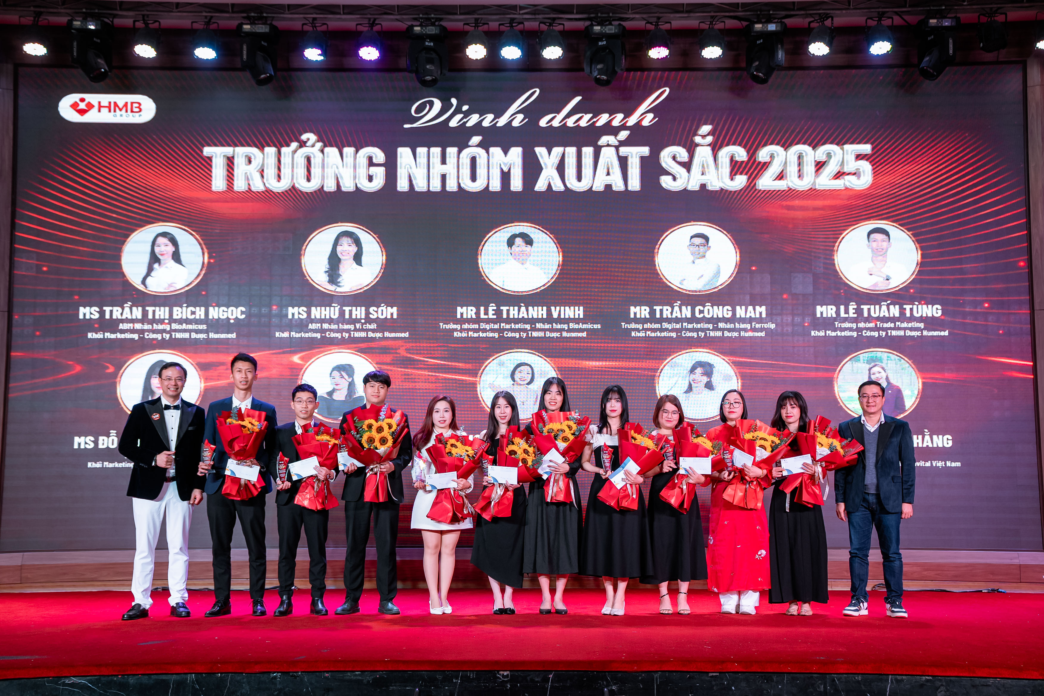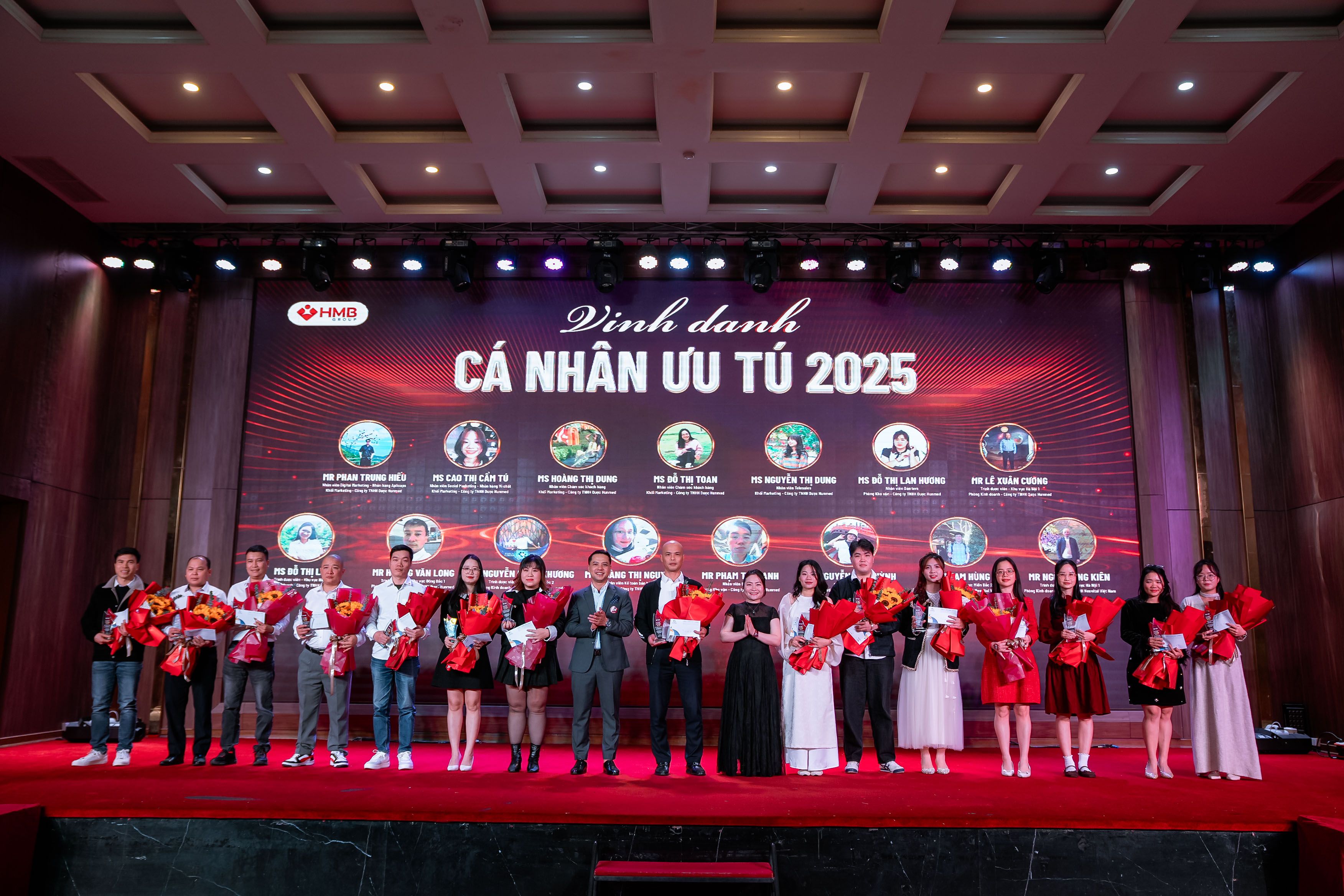 Tiếp nối là hạng mục vinh danh các cá nhân và tập thể xuất sắc – những gương mặt tiêu biểu với thành tích nổi bật, đóng góp tích cực vào kết quả chung của HMB Group trong năm 2025. Mỗi cái tên được xướng lên là một câu chuyện nỗ lực, một lời cảm ơn chân thành và cũng là nguồn động viên để toàn thể cán bộ nhân viên thêm tự hào, thêm vững tin khi đồng hành cùng HMB.