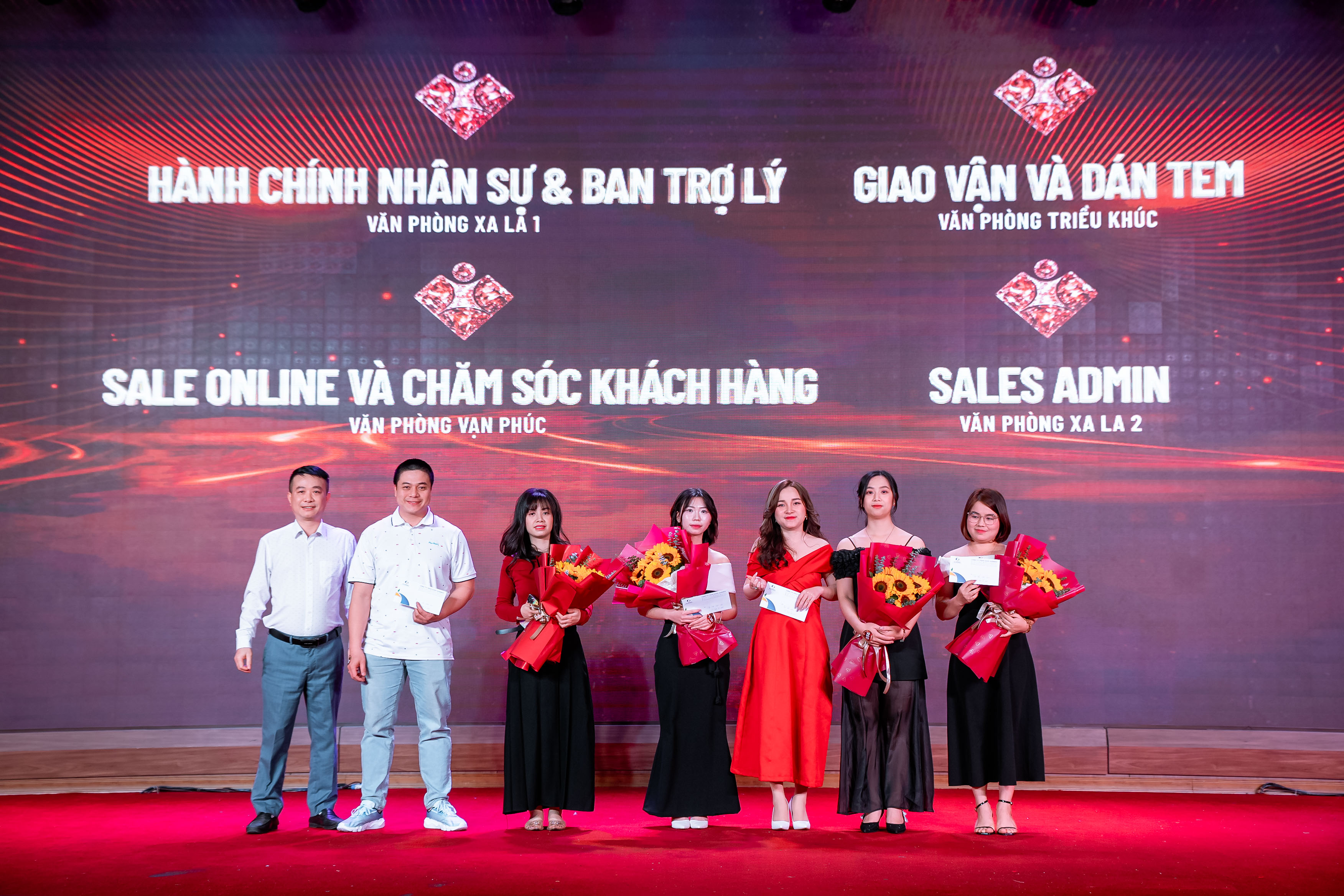 Đại diện Phòng Kế toán và Kho vận lên nhận danh hiệu Tập thể ưu tú, ghi nhận những nỗ lực thầm lặng nhưng bền bỉ trong công tác hỗ trợ và vận hành