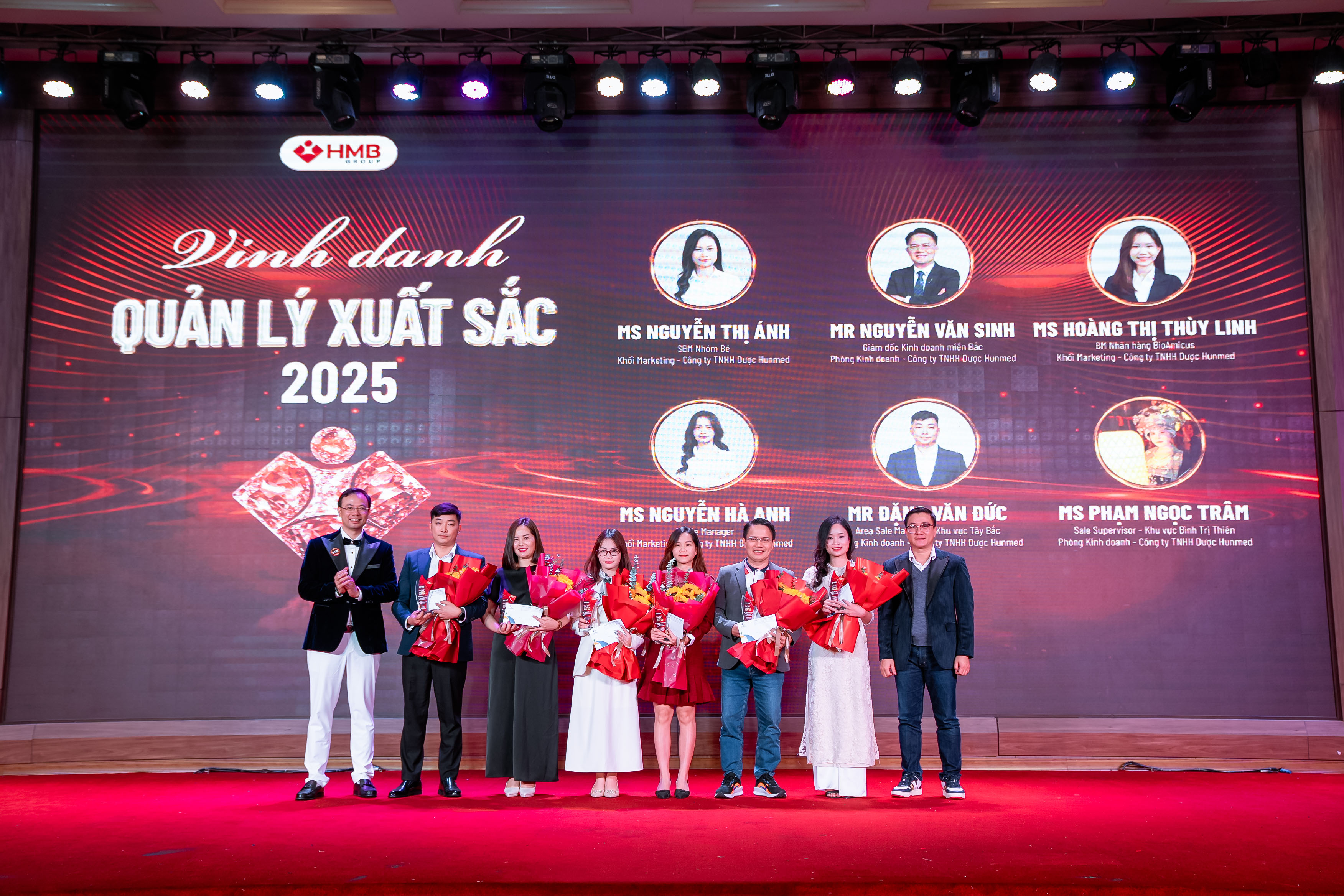 Tập thể Phòng Kinh doanh – Công ty TNHH Dược Hunmed cùng lên nhận danh hiệu Tập thể xuất sắc năm 2025, ghi dấu bằng những con số ấn tượng và tinh thần chinh phục mục tiêu không ngừng