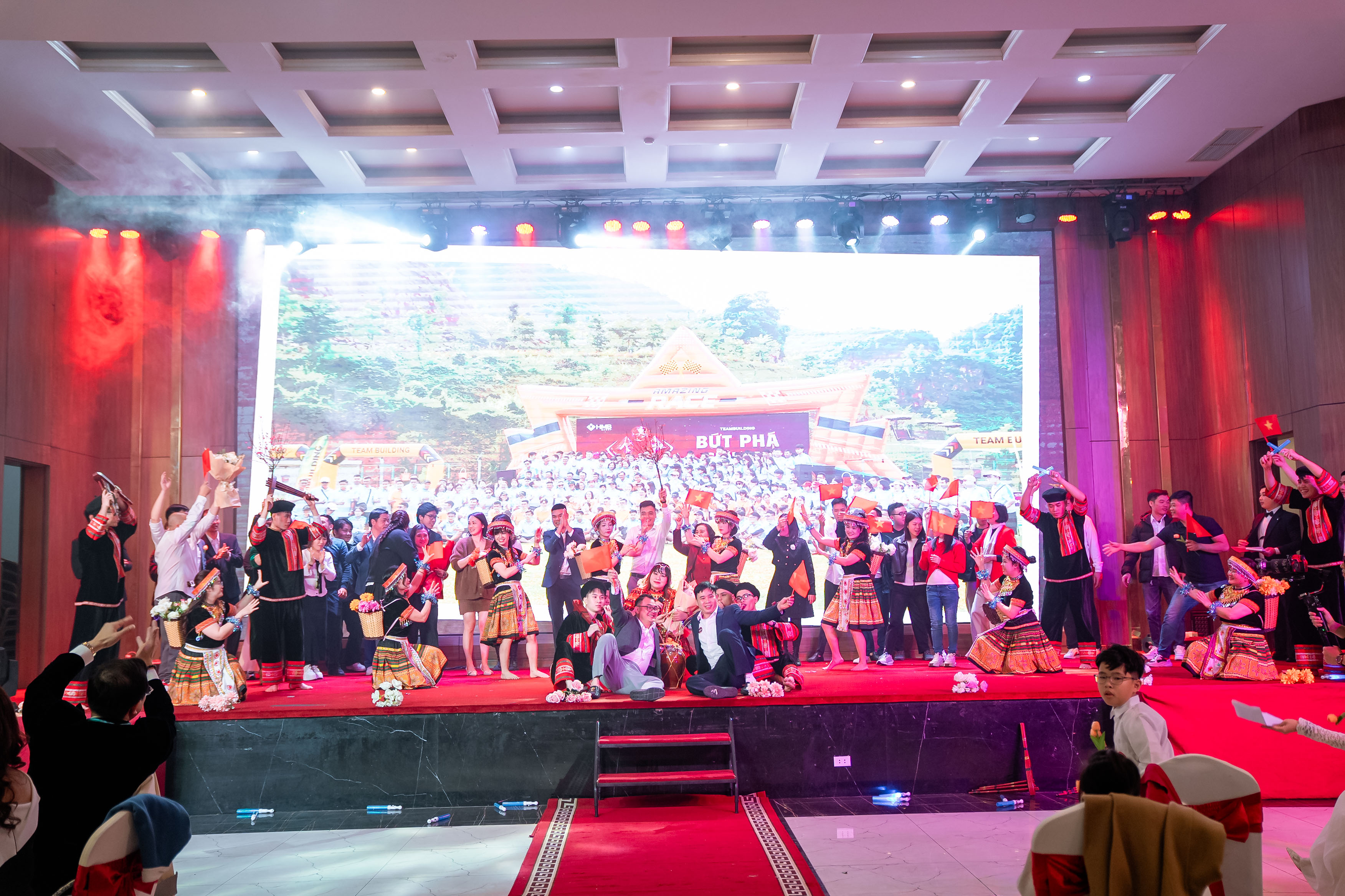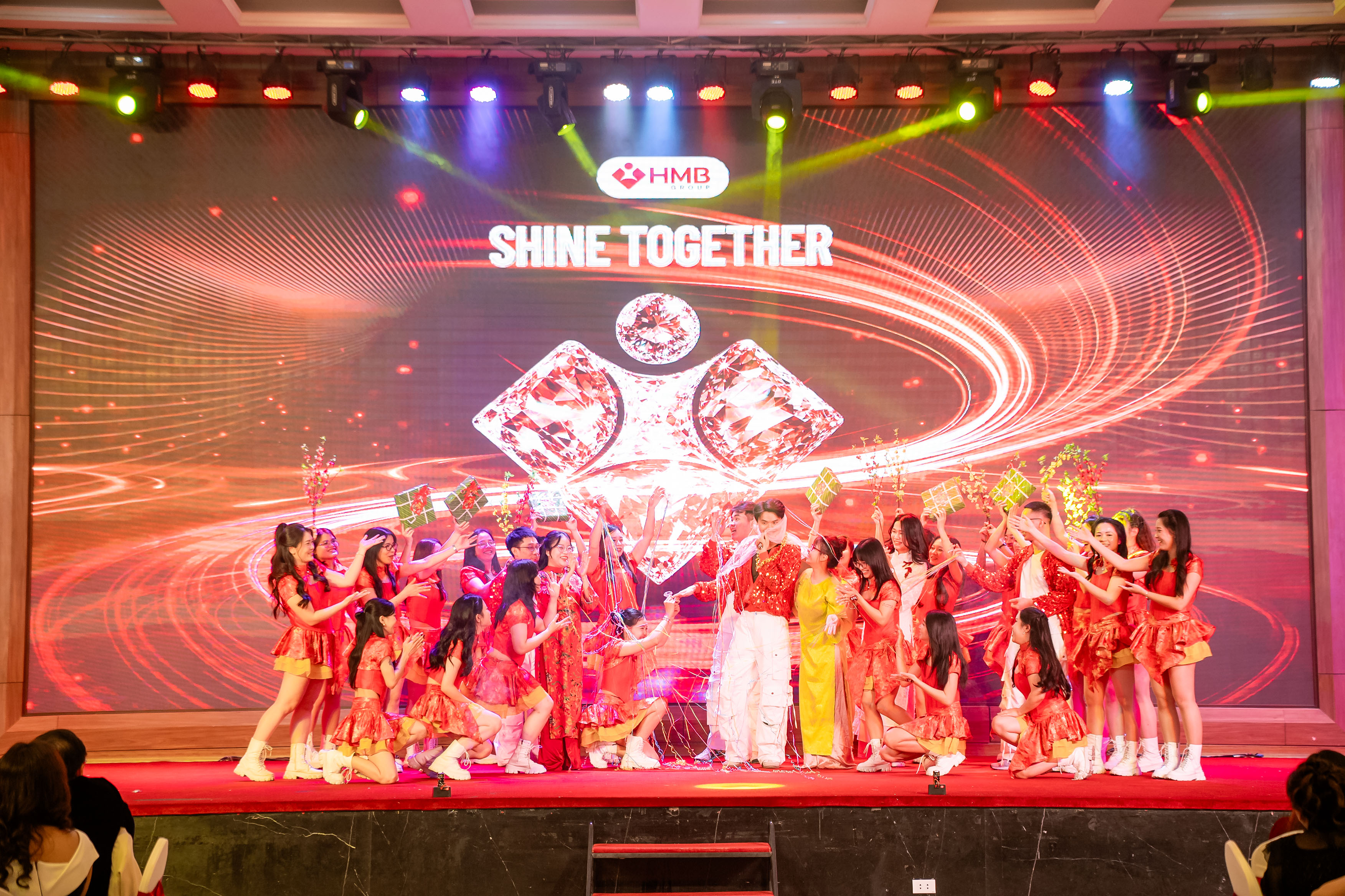 Sau những giây phút trang trọng và giàu cảm xúc, chương trình chính thức bước vào phần khai tiệc, đồng thời được khuấy động sôi nổi với cuộc thi văn nghệ nội bộ "Shine Together". Những tiết mục trẻ trung, rực rỡ sắc màu đã mang đến không khí tưng bừng và tinh thần gắn kết rõ nét cho đêm tiệc. Phần trao giải diễn ra đầy kịch tính khi số điểm giữa các đội luôn bám sát nhau, khiến hội trường sôi động đến những phút cuối cùng.
